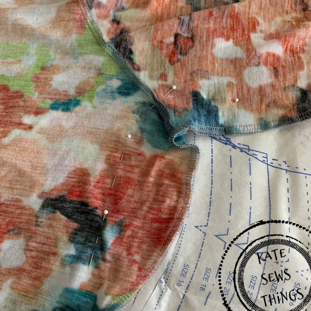Size cut: Seamwork Erica XS at shoulder, neck, and under armpit, blending to Cashmerette Dartmouth size 12 G/H at bustline, through waist and hips. Dartmouth size 12 for neckband.